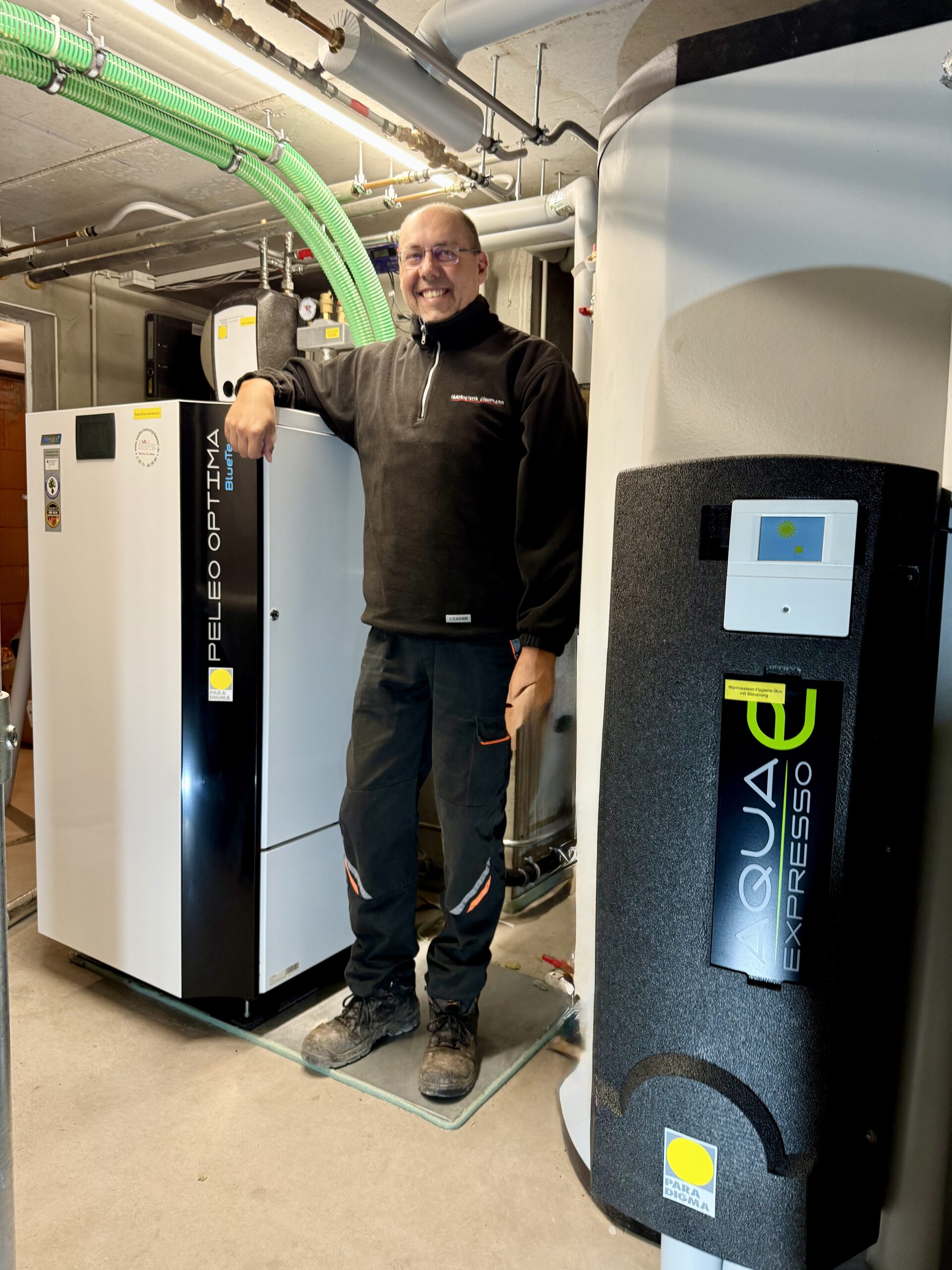 Gemeinsam erörterten wir die bestehende Heizsituation und Familie Eisemann entschied sich für Pellets und Solar. Die Unabhängigkeit war Familie Eisemann sehr wichtig deshalb kam zur Pelletsbrennwertheizung eine Solaranlage zur Heizungswegschaltung dazu. Familie Eisemann hatte schon eine Solaranlage, aber nur für Warmwasser, kannte die Leistung des Kollektor`s von Paradigma und wollte nun auch damit heizen. Somit erhöhte man die Kollektorfläche von 5m² auf 10m². Die Wärme wird im Hygienepufferspeicher mit 800 Liter Heizungswasser gespeichert und dem System Heizung und Warmwasser zur Verfügung gestellt. „Wir haben der Firma Käfer vor über 20 Jahren das Vertrauen geschenkt zur neuen Heizung, die über die gesamten Jahre immer einen Top Service zu unserer vollsten Zufriedenheit durchführte, es gab keine Frage die „Neue“ ist wieder vom Käfer“, so Familie Eisemann.